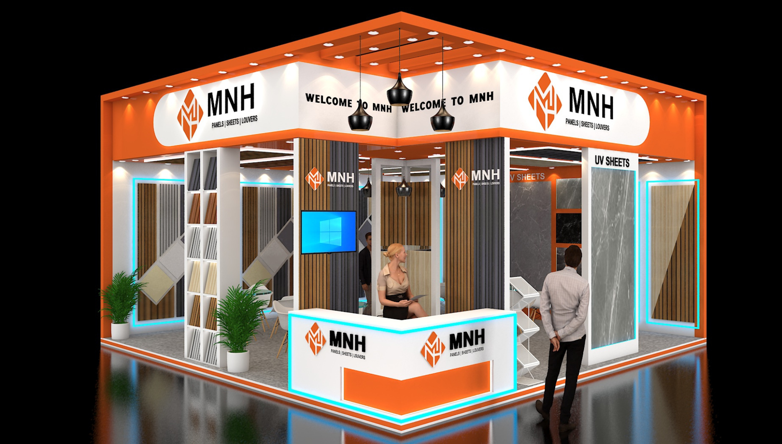 You can contact us via phone, email, or fill out the inquiry form on our website. Share your requirements including stall size, furniture quantity, and electronic equipment needed, and our team will provide a detailed quotation.